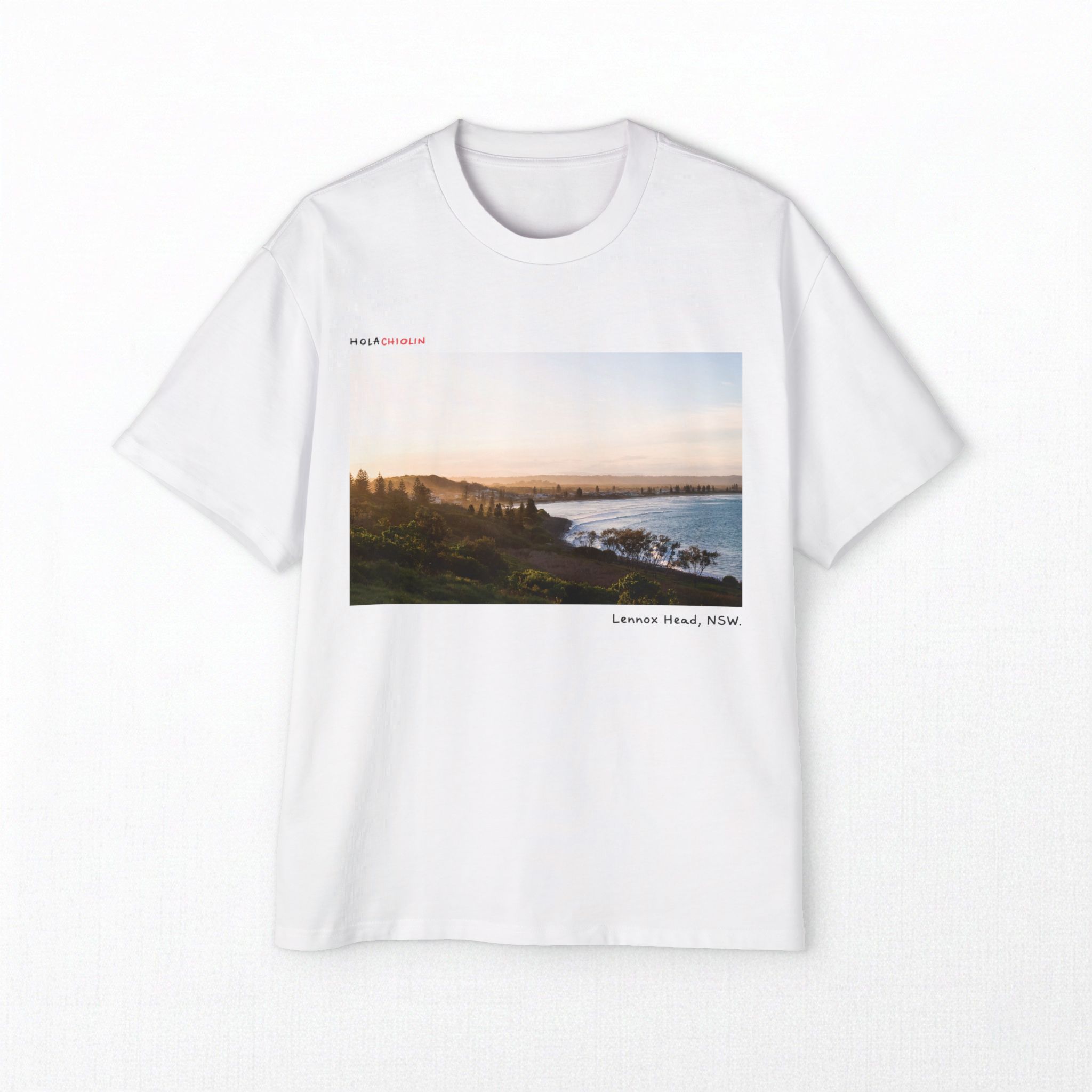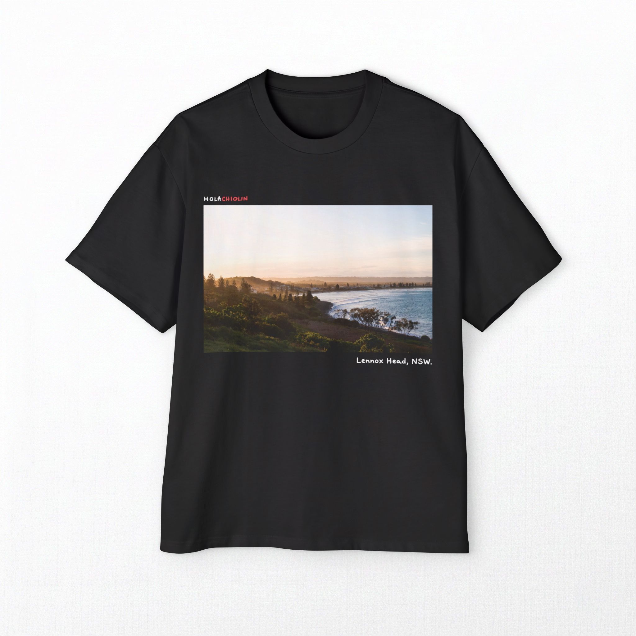 Oversized unisex tee featuring an original photo of the sunset from Lennox Head lookout, NSW.