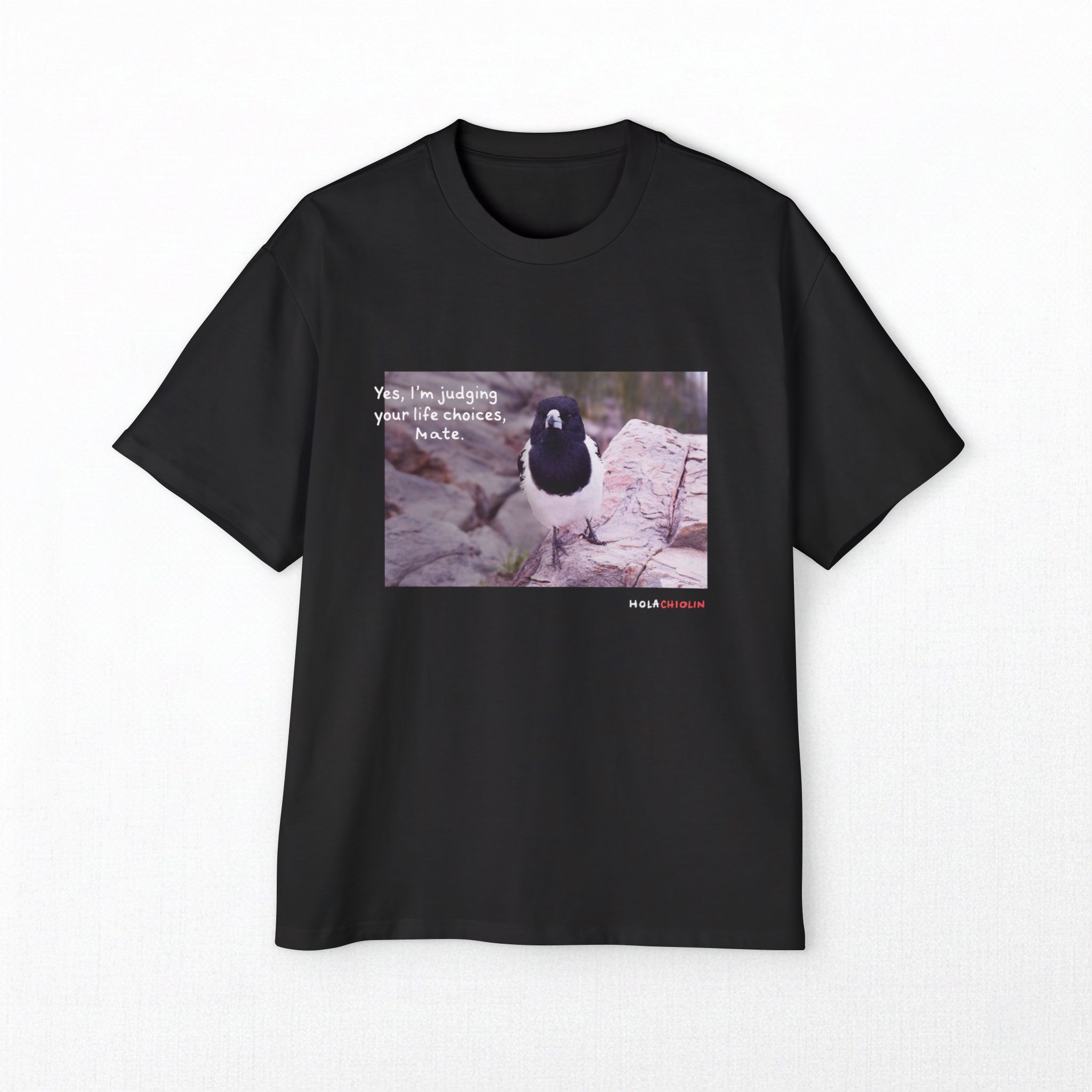 Oversized unisex tee featuring an original photo of a typical judgying Australian bird.